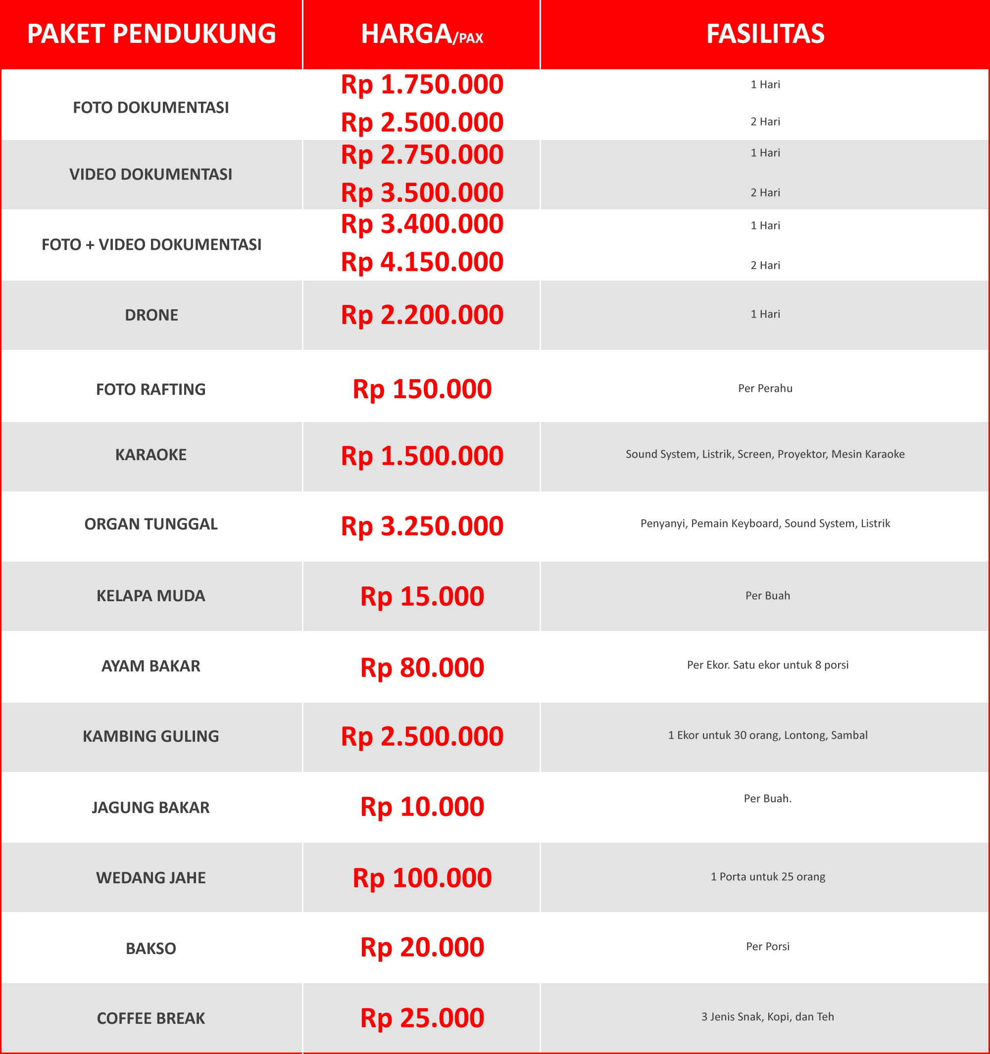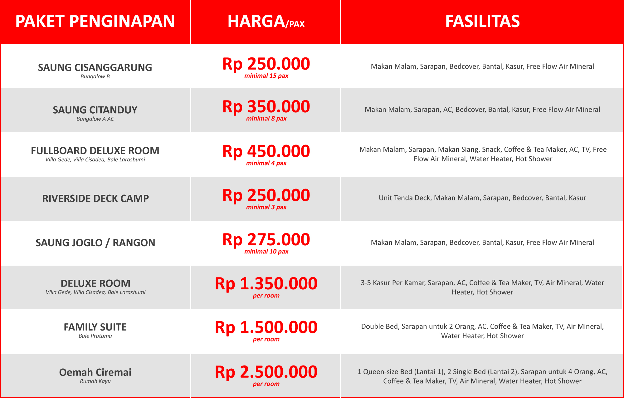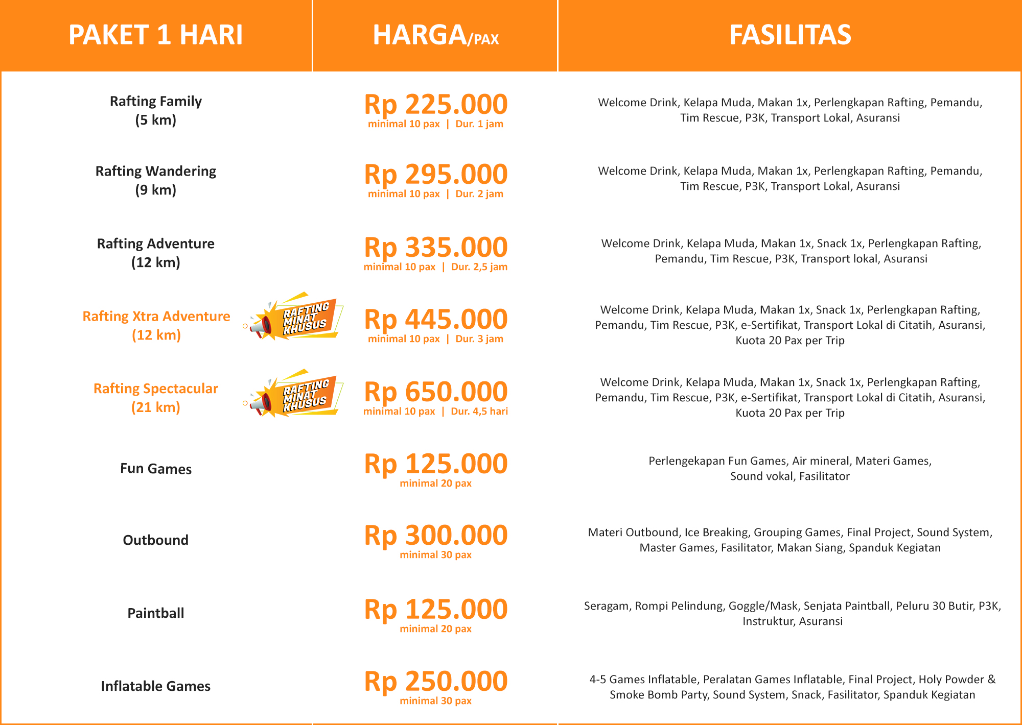 Berikut pilihan paket kegiatan di sungai Citarik: